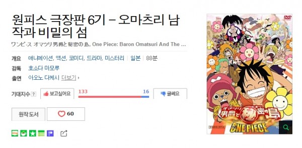 원피스 극장판 6기 - 오마츠리 남작과 비밀의 섬 페이지 정보 작성자 파일센터 작성일16-07-19 17:22 조회7,941회 댓글0건 관련링크 이전글 다음글 목록 본문 원피스 극장판 6기 - 오마츠리 남작과 비밀의 섬원피스 극장판중에 가장 무섭고 엄청난 반전을 숨기고잇는 편호소다 마모루가 감독을해서 엄청난 편이 탄생했군요매니아들이 무척이나 좋아하는편 강추! 댓글목록 등록된 댓글이 없습니다. 이전글 다음글 목록